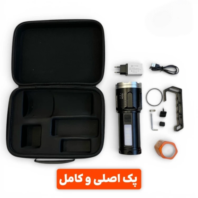 علاوه بر نور دوربرد لیزری، در بدنه این دستگاه یک پنل نوری SMD عریض تعبیه شده است. این پنل نوری برای زمانی که نیاز به روشنایی پخش دارید (مانند داخل چادر، زمان تعمیر خودرو یا قطعی برق منزل) بسیار کارآمد است و محیط را کاملاً روشن میکند.