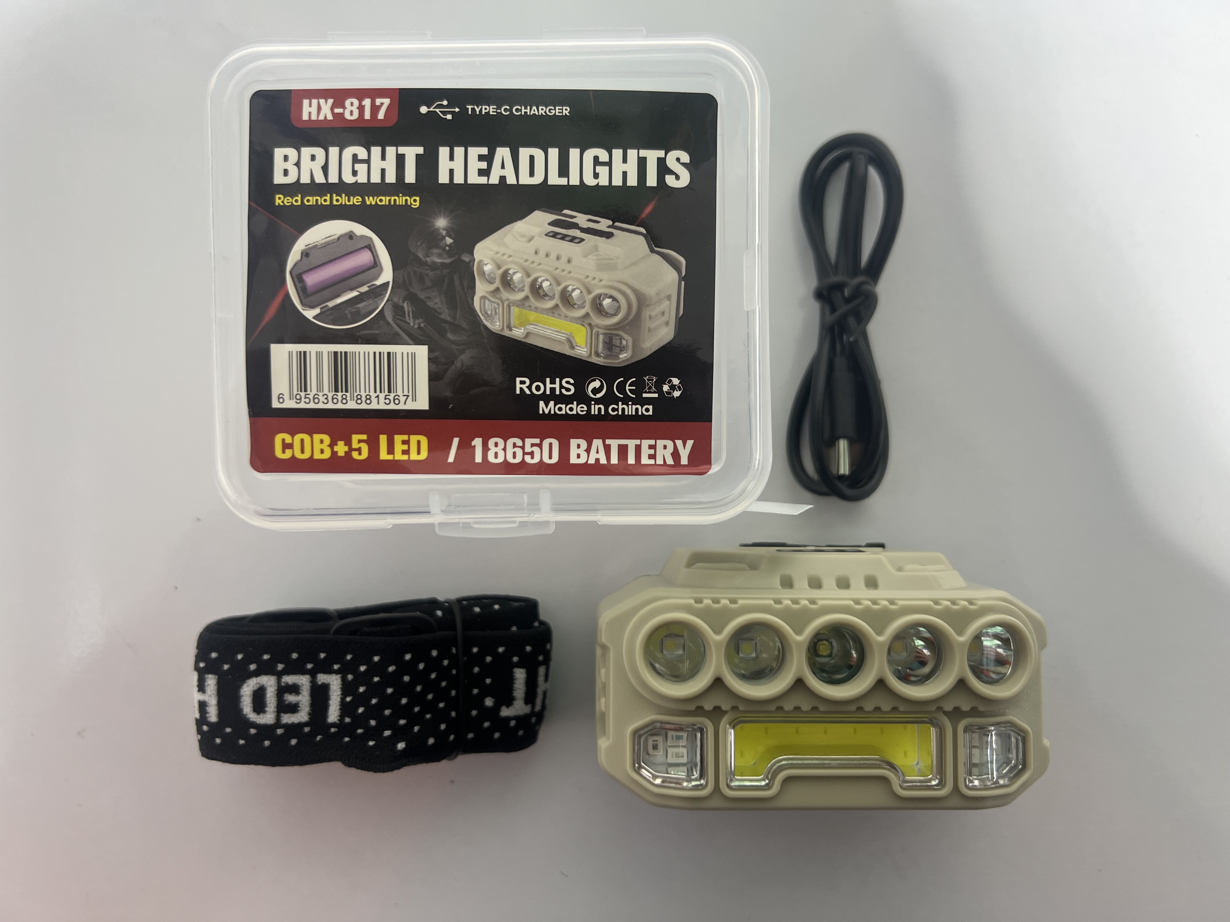 چراغ پیشانی | هدلایت تاکتیکال مدل HX-817 با باتری اسمال سان اصلی ، ۵ حالت نوری، ۸۰۰ لومن ۱۰۰ متر برد نور